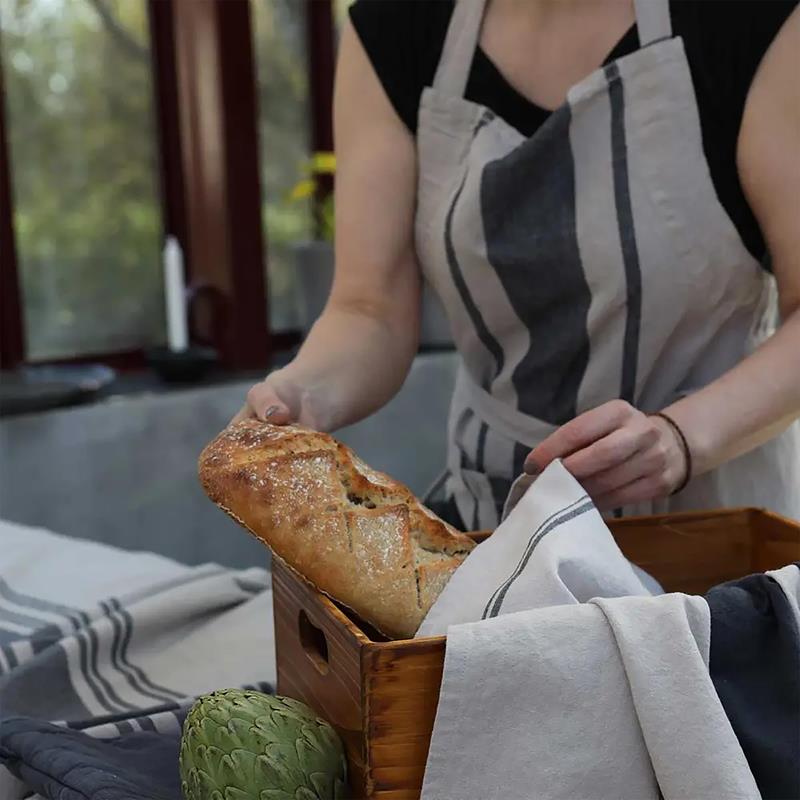 Ernst. 2 kökshanddukar 70 x 50 cm som skapar en härlig atmosfär och ger en rustik känsla i köket. Handdukarna är gjorda i återvunna material och är därför ett hållbart och ansvarsfullt val. Brödpenseln 7 cm i trä fungerar till all bakning och matlagning. Den är originell i sin design vilket gör att du kan låta den ligga framme även när den inte används.