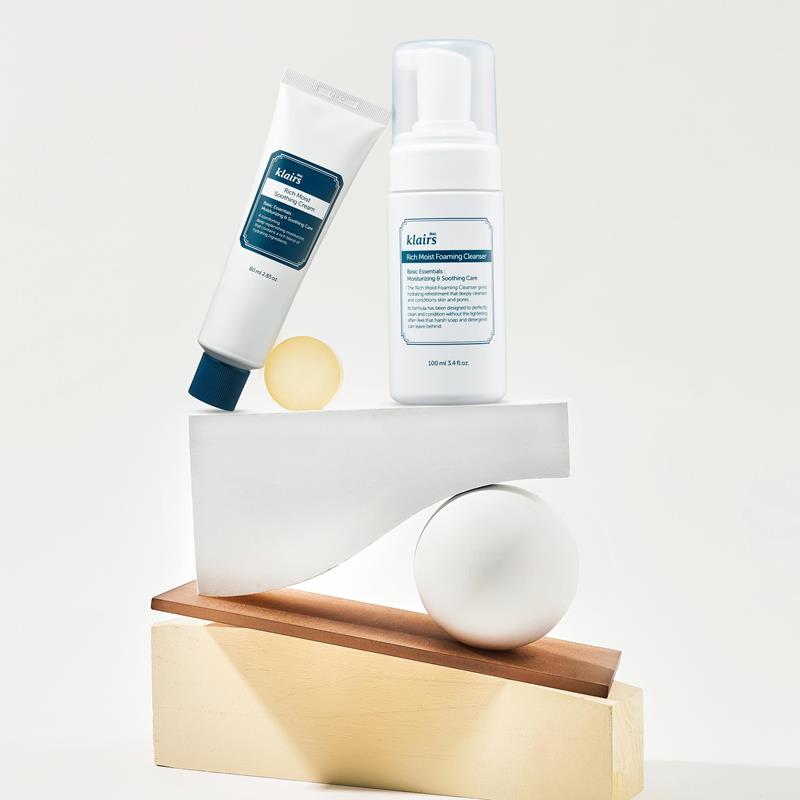 Rich Moist Foaming Cleanser 100 ml: Denna skumrengöring tar bort orenheter och minskar porer samtidigt som den återfuktar huden. Rich Moist Soothing Cream 80 ml: Detta är en djupt återfuktande kräm speciellt utformad för känslig hud. Klairs är ett koreanskt, prisvinnande märke som grundades 2009 och som har en unik och okomplicerad syn på hudvård.