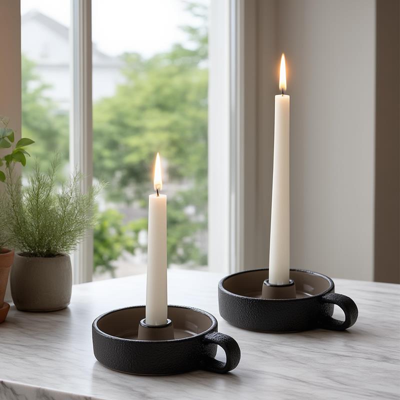 Ge ditt hem en stämningsfull touch med dessa ljusstakar från Orrefors Jernverk formgivna av Jon Eliason. Ljusstakarna är tillverkade i gedigen keramik med en vackert emaljerad insida, vilket ger en harmonisk kontrast mellan den matta ytan och den glansiga insidan. Insidan kan fyllas med säsongsbetonade dekorationer. Höjd: 5 cm. Bredd: 13 cm.
